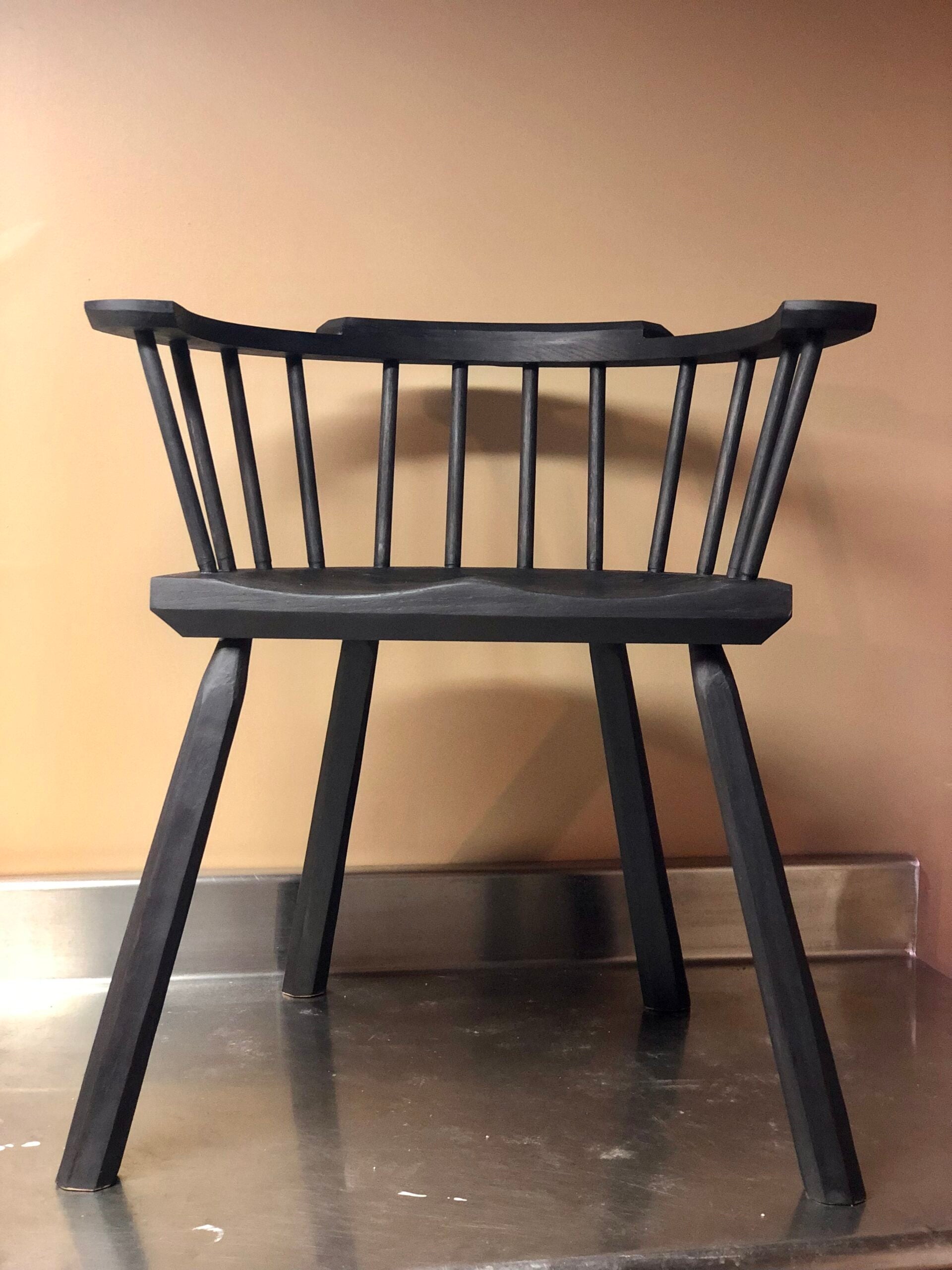 Designed by Curtis Buchanan, this knife is the draw knife of choice for your Windsor chair needs. We start with 1⁄4″ stock, forge in the bevel, flat grind the top, bend the handles and cant them up to facilitate use on a shaving horse. A hollow grind on the flat allows ease of sharpening. The bevel is ground at 25 degrees.